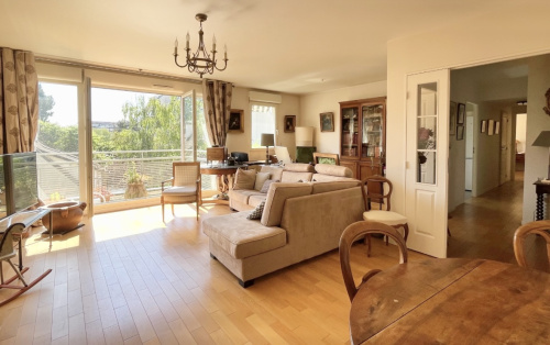 LE CHESNAY-ROCQUENCOURT, RESIDENCE DU "DOMAINE DE ROCQUENCOURT" GRAND STANDING, Magnifique appartement de 4/5 pièces situé au 4ème étage et d'une surface de 102,11 m², comprenant grand séjour donnant sur un balcon/coin terrasse ensoleillée exposition plein Sud, 3 chambres avec un 2ème balcon filant, cuisine indépendante et entièrement équipée, 2 SDB, 2 WC, placards, double vitrage, une cave et 1 place de parking en sous-sol sécurisé complètent ce bien, bon état général, charges annuelles: 6 000 Euros, copropriété de 109 lots, honoraires agence: 2,80 %, proche écoles et toutes commodités, COUP DE COEUR ASSURE ! A VISITER AU 06 88 05 05 55